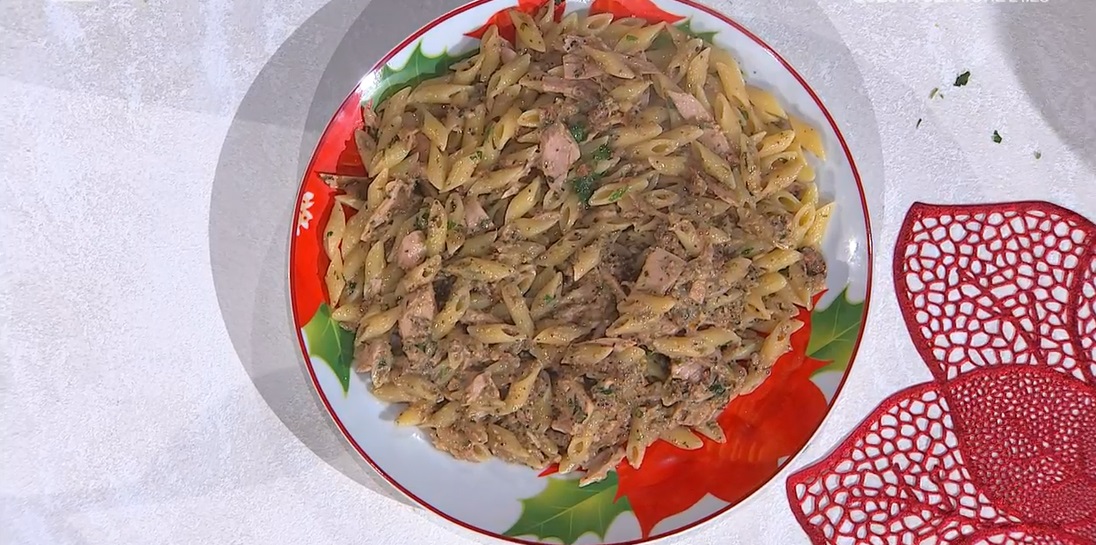 Anche questo giovedì, la Zia Cri fa una capatina in quella che è stata la sua casa per due anni, tutti i giorni. La cuoca romagnola, in vista del Natale, ci prepara un primo sciuè sciuè, perfetto per la vigilia. Ecco le mezze penne tonno e capperi.
