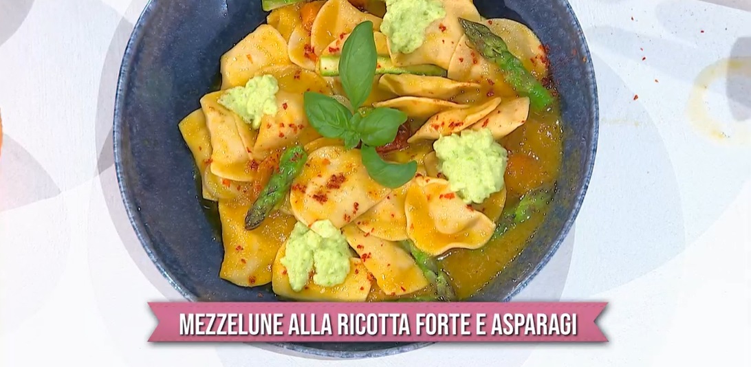 “É sempre mezzogiorno”: mezzelune alla ricotta forte e asparagi di Antonella Ricci