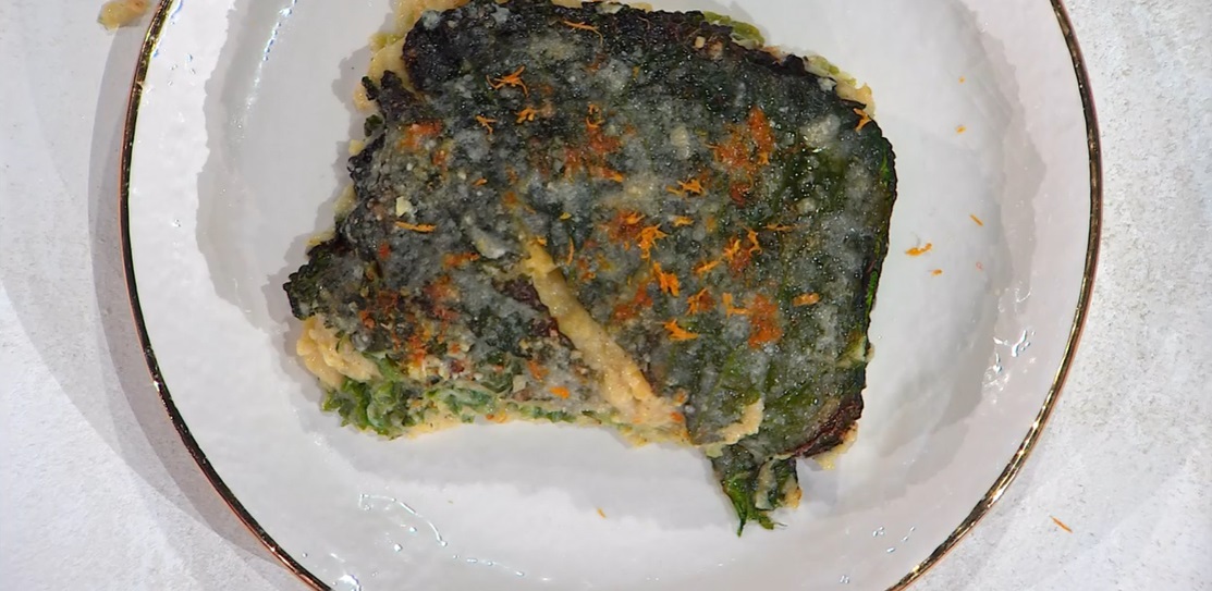 Dopo tanta gentilezza, una buona dose di arroganza, con Ivano Ricchebono. Il cuoco ligure, oggi, prepara un piatto che fa brillare gli occhi ad Evelina, un piatto conviviale, vegetariano ed a base di verza, ovvero la millefoglie di verza.