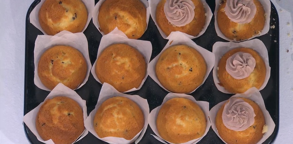 Con uno scavino, creiamo un incavo al centro di ogni muffin. Inseriamo nell’incavo la crema e finiamo con un bel ciuffo di crema in superficie. Conserviamo in frigorifero.