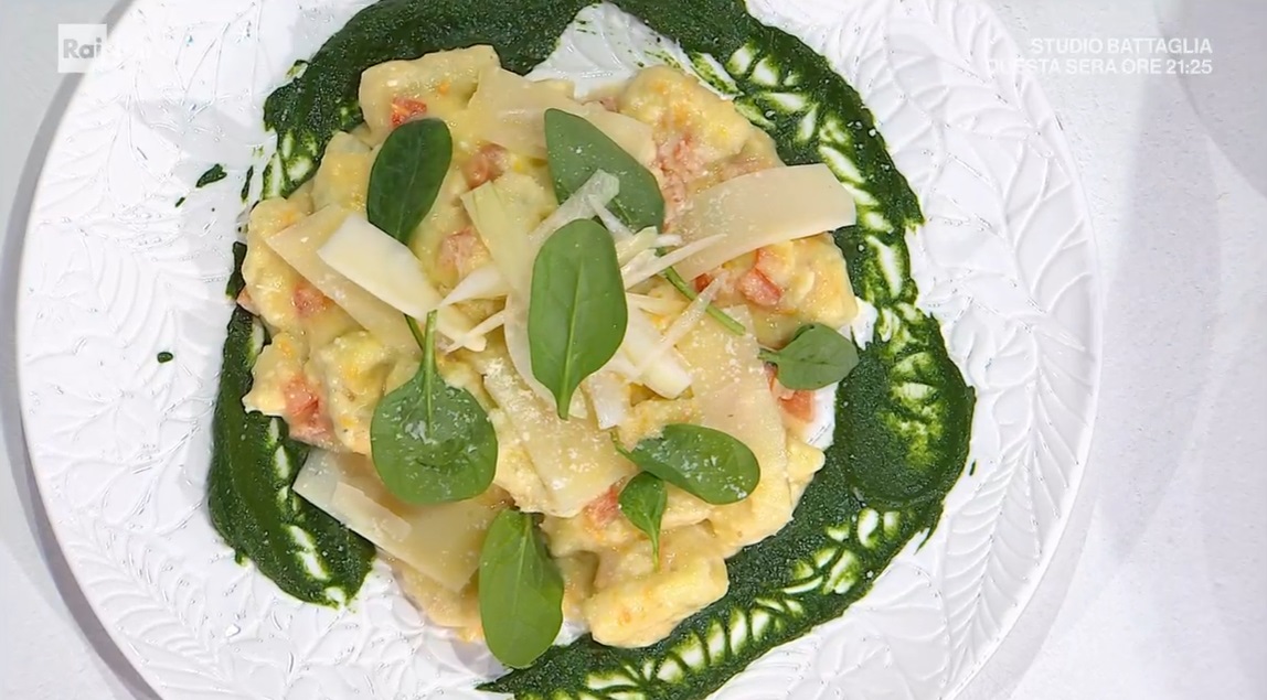 ndunderi di ricottaUn po’ del sole di Napoli arriva nel bosco di Antonella, a portarlo sono Mauro e Mattia Improta. I due cuochi campani, padre e figlio, propongono un primo piatto goloso e primaverile. Ecco i ndunderi di ricotta spinacini e caciocavallo.