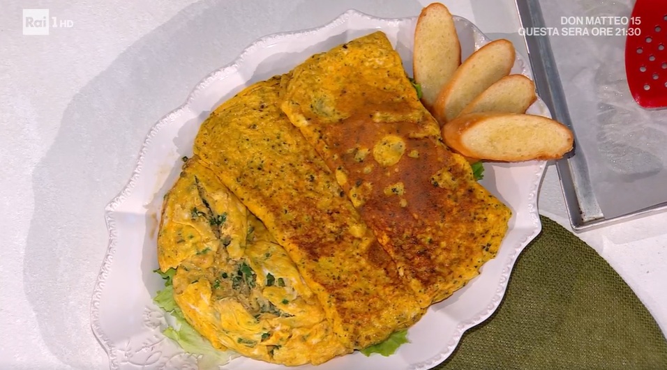 Scaldiamo per bene una padella con una noce di burro. Quando è ben calda, versiamo all’interno il composto di uova e, quando si forma la crosta sotto, pian piano, ripieghiamo l’omelette a mezzaluna. Lasciamo cuocere ancora pochi secondi: deve rimanere bavosa al cuore.