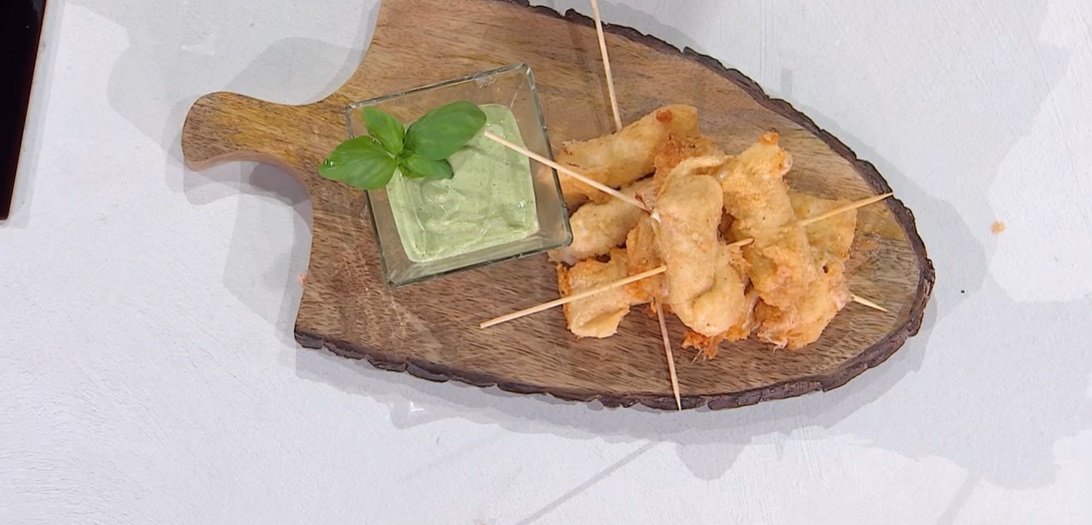 Passiamo gli involtini nella farina, negli albumi e, infine, nel pangrattato. Friggiamo in olio caldo e profondo fino a doratura. Scoliamo su carta assorbente e serviamo con la maionese al basilico.