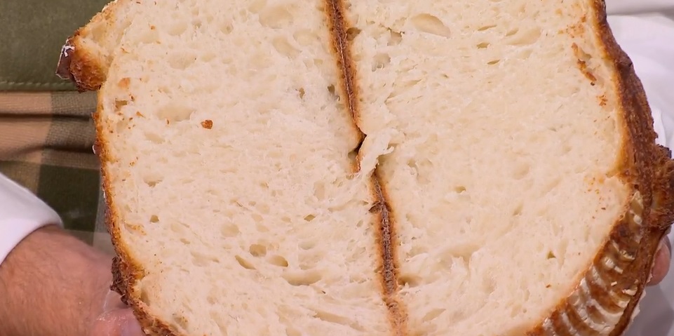 Il forno di Fulvio Marino sforna senza sosta deliziosi lievitati, ormai da 4 anni. Anche in quest’edizione, il panettiere piemontese non smette di sorprendere e, oggi, lo fa con il lievito madre preparato 4 anni fa. Vediamo come preparare la pagnotta classica al lievito madre.