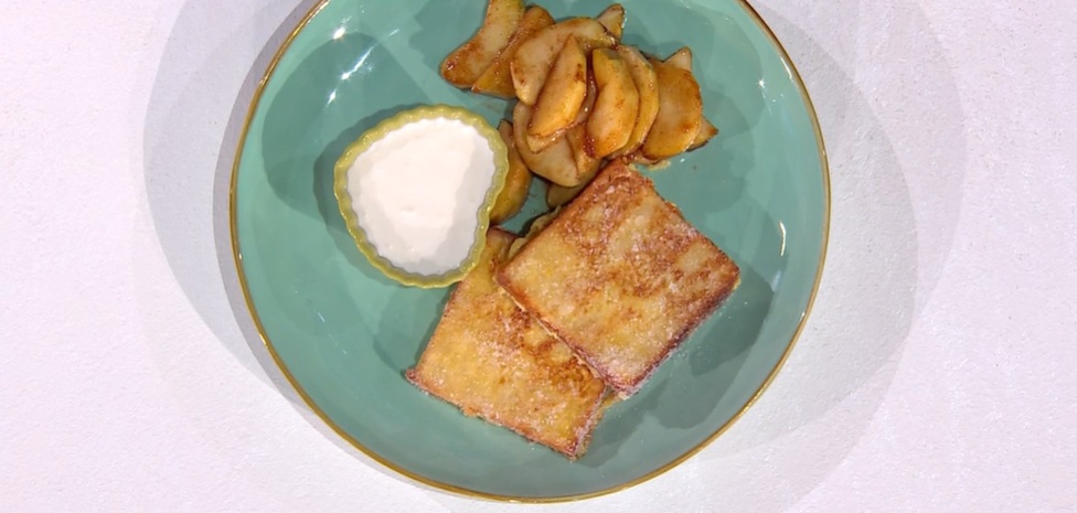 Sbattiamo le uova con la panna. Quando il pane è freddo, lo tagliamo a fette spesse circa mezzo cm. Le inzuppiamo nel composto di uova e panna, quindi le mettiamo a rosolare in padella con abbondante burro già caldo: deve dorare leggermente sui due lati. Una volta pronto, lo preleviamo e lo passiamo nello zucchero semolato sui due lati.