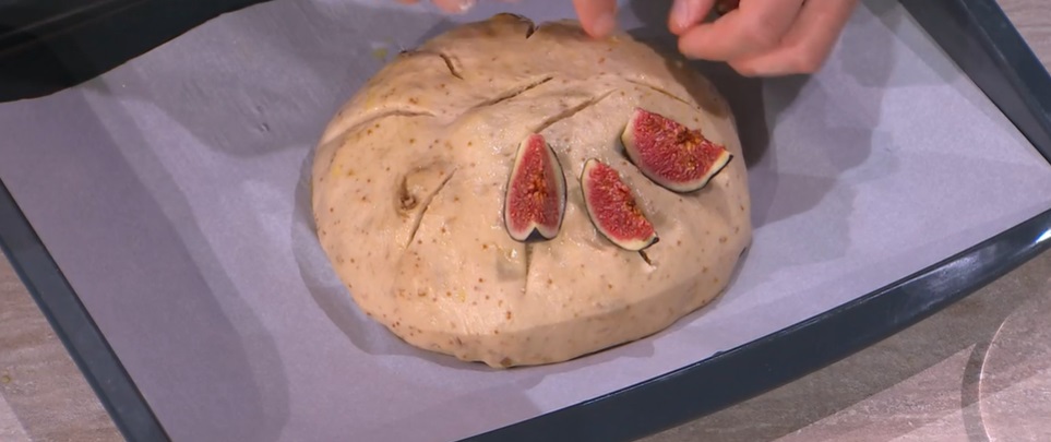 pan coi fichiE dopo il pieno d’arroganza, facciamo il pieno di dolcezza, con Fulvio Marino. Il panettiere piemontese propone un lievitato dolce, a base di fichi, delizioso frutto di stagione. Ecco il pan coi fichi.