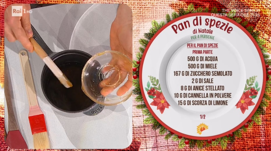 - Sciroppo: 500 g acqua, 500 g miele, 167 g zucchero, 2 g sale, 8 g anice stellato, 10 g cannella, 15 g scorza di limone, 15 g scorza di arancia, 2 g vaniglia, 1 g noce moscata, 1 g chiodi di garofano, 1 g pepe bianco, 5 g cardamomo