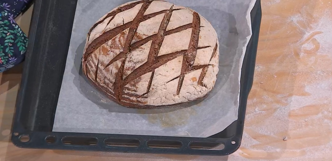 - 500 g farina tipo 0, 500 g farina di grano saraceno, 600 ml acqua, 200 g lievito madre, 22 g sale
