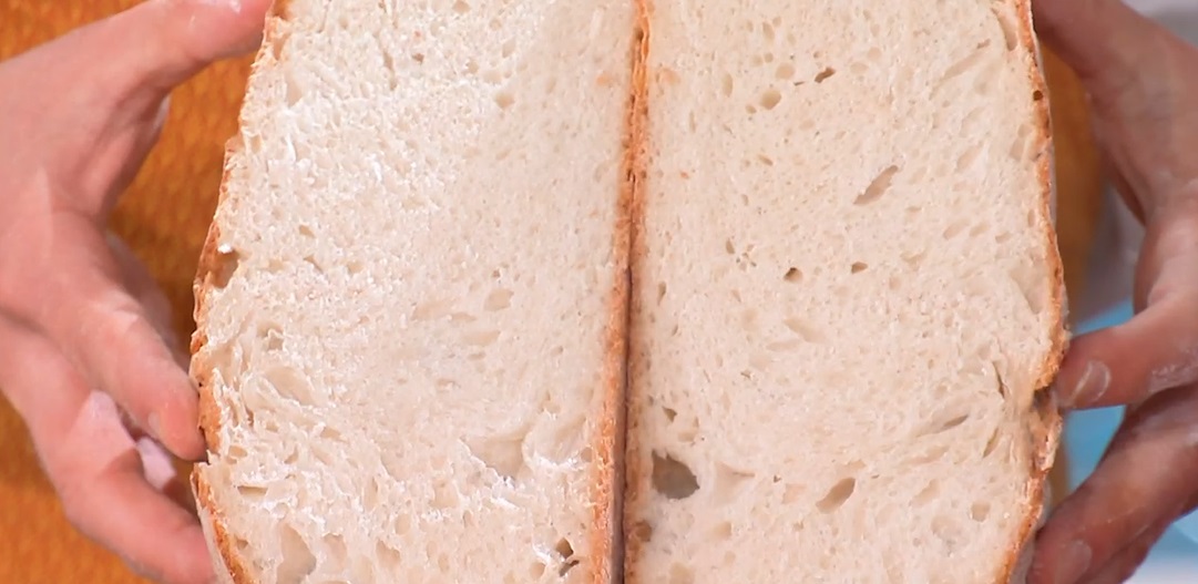 Capovolgiamo l’impasto sul piano infarinato e ripieghiamo i lembi esterni verso il centro, formando nuovamente una pagnotta, che inseriamo in un cestino da pane infarinato, rivolgendo la parte bella verso l’alto. Copriamo e lasciamo lievitare ancora 2 ore a temperatura ambiente.