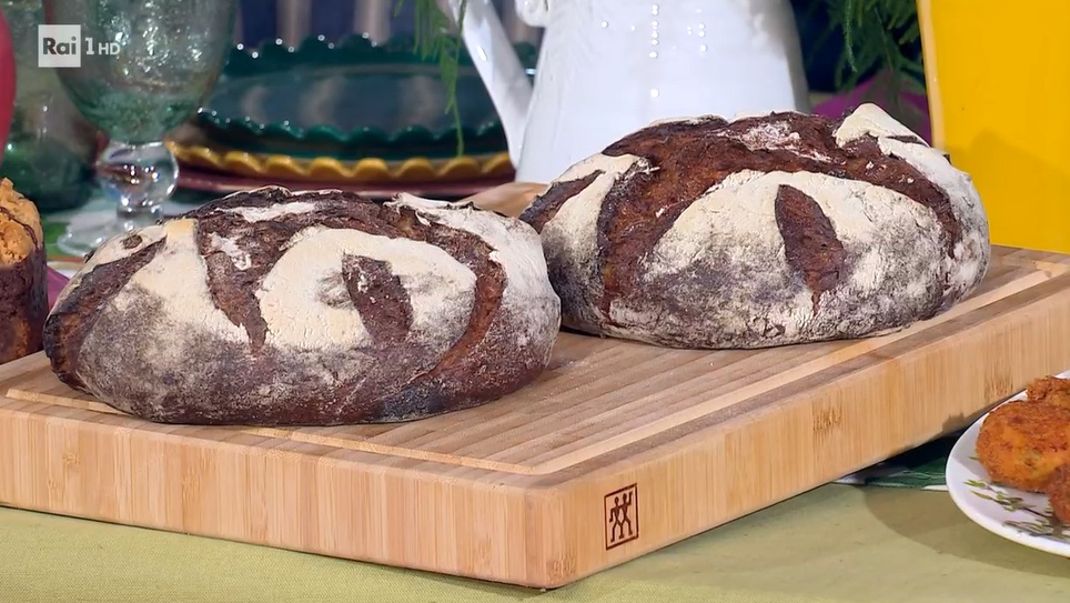 - polentina di castagne, 150 g farina 0, 5 g lievito di birra fresco, 150 g lievito madre, 80 g acqua, 60 g patate lesse, 50 g castagne lessate, 10 g sale, 20 g olio evo