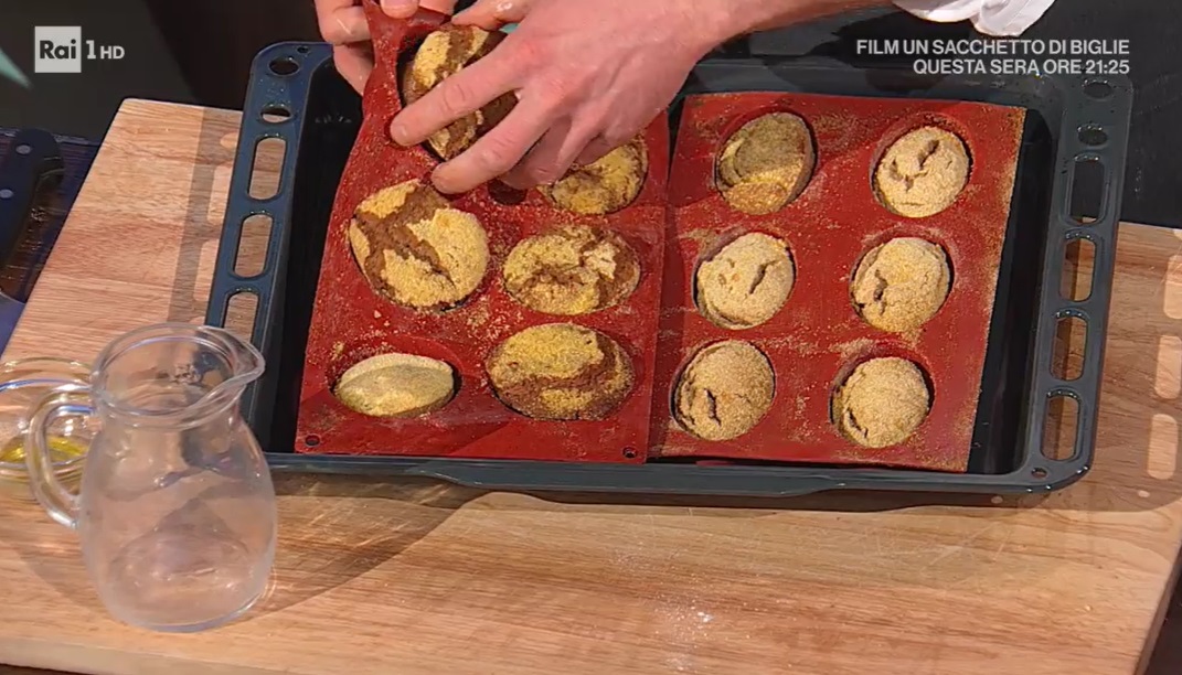 In una ciotola, mettiamo l’acqua leggermente tiepida con il lievito di birra sbriciolato. Mescoliamo con una frusta, quindi aggiungiamo la farina di riso ed il riso stracotto e raffreddato (facciamo bollire 100 g di riso e 300 g di acqua fino ad ottenere una crema), mescoliamo ancora, quindi inseriamo la farina di grano saraceno e di mais. Lavoriamo fino ad ottenere una crema soda. Inseriamo il sale, l’olio e mescoliamo ancora. Versiamo l’impasto direttamente nella forma in silicone scelta (ma va bene anche quello classico da plumcake), fino a riempirlo per metà della sua altezza. Spolveriamo con la farina di mais, copriamo e lasciamo lievitare per 45 minuti – 1 ora: compariranno delle crepe in superficie.