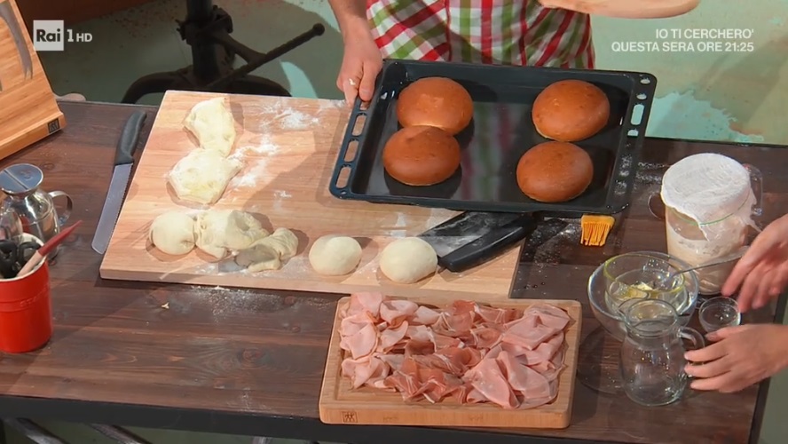 panini all'olioA chiudere il menu di oggi, come sempre, è l’abile panettiere Fulvio Marino, pronto a portare in tavola il pane, alimento immancabile nelle case degli italiani. Oggi, in particolare, prepariamo i panini all’olio.