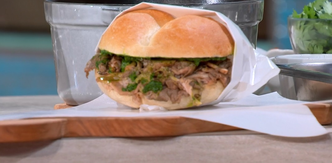 Tagliamo i panini a metà e spalmiamo la salsa verde sulla metà infariore. Adagiamo sopra il lampredotto, finiamo con la seconda metà del pane che intingiamo per pochi secondi nel brodo di cottura del lampredotto.