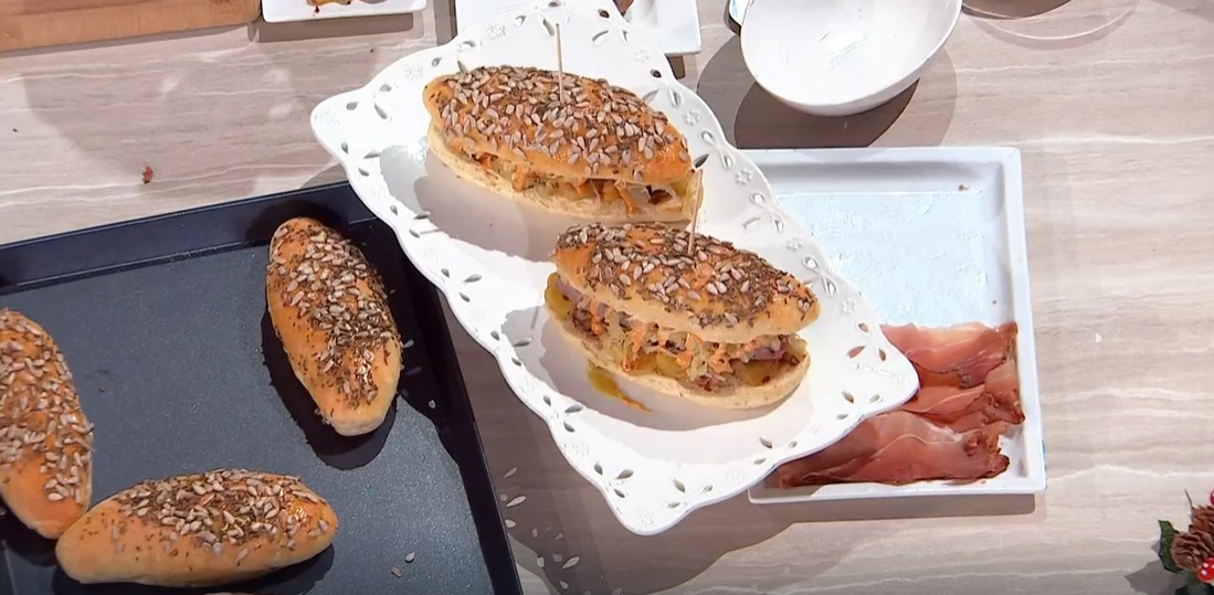 panino dello sciatore di Fulvio MarinoLa serie di lievitati festivi sta per giungere a conclusione. Oggi, Fulvio Marino prepara un panino super farcito, pensato per chi sta godendo delle belle giornate sulle piste da sci. Ecco il panino dello sciatore.
