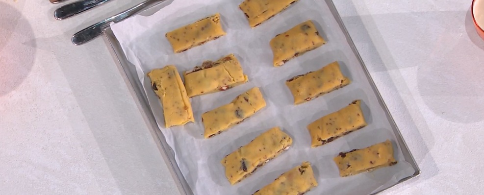 Formiamo dei salsicciotti, leggermente schiacciati, che tagliamo a rettangoli. Disponiamo quest’ultimi su una teglia e cuociamo in forno caldo e statico a 165° per 20 minuti: devono dorare.