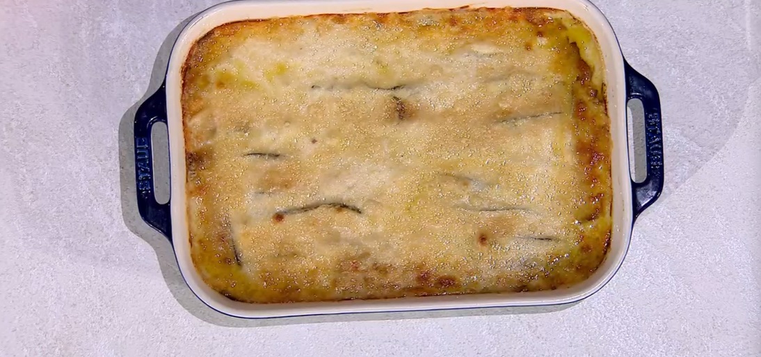Antonio Paolino, con occhiali da sole e cappello, intona una hit estiva intramontabile, prima di proporre la sua ultima ricetta di questa stagione. Il cuoco campano prepara una ricchissima parmigiana di zucchine.