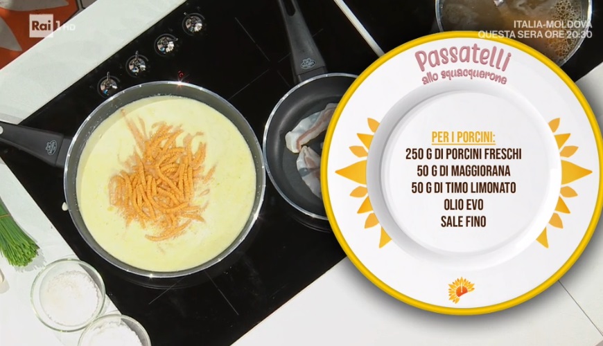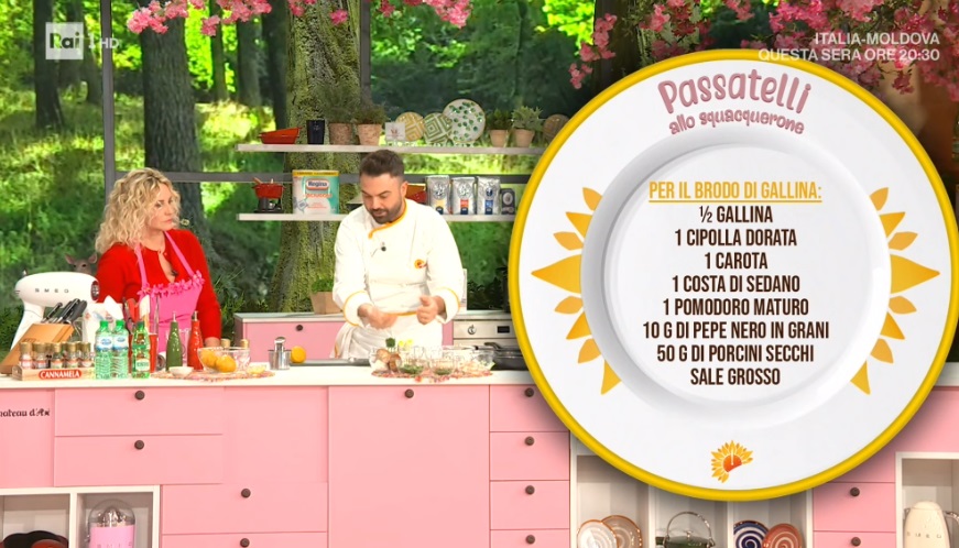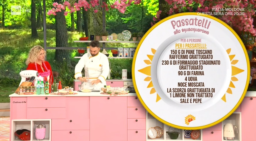 - Passatelli: 150 g pane toscano grattugiato, 230 g formaggio stagionato grattugiato, 90 g farina, 4 uova, noce moscata, scorza di 1 limone, sale e pepe