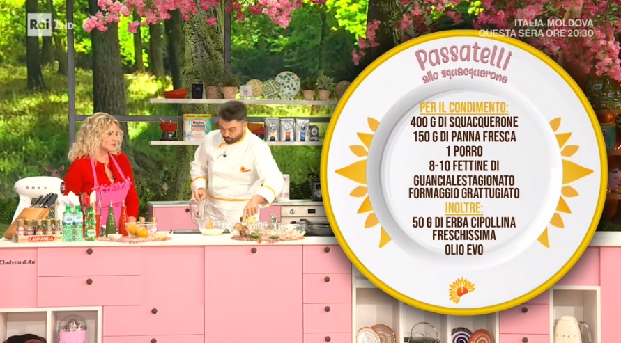 - Condimento: 400 g squacquerone, 150 g panna fresca, 1 porro, 8-10 fettine di guanciale, formaggio grattugiato