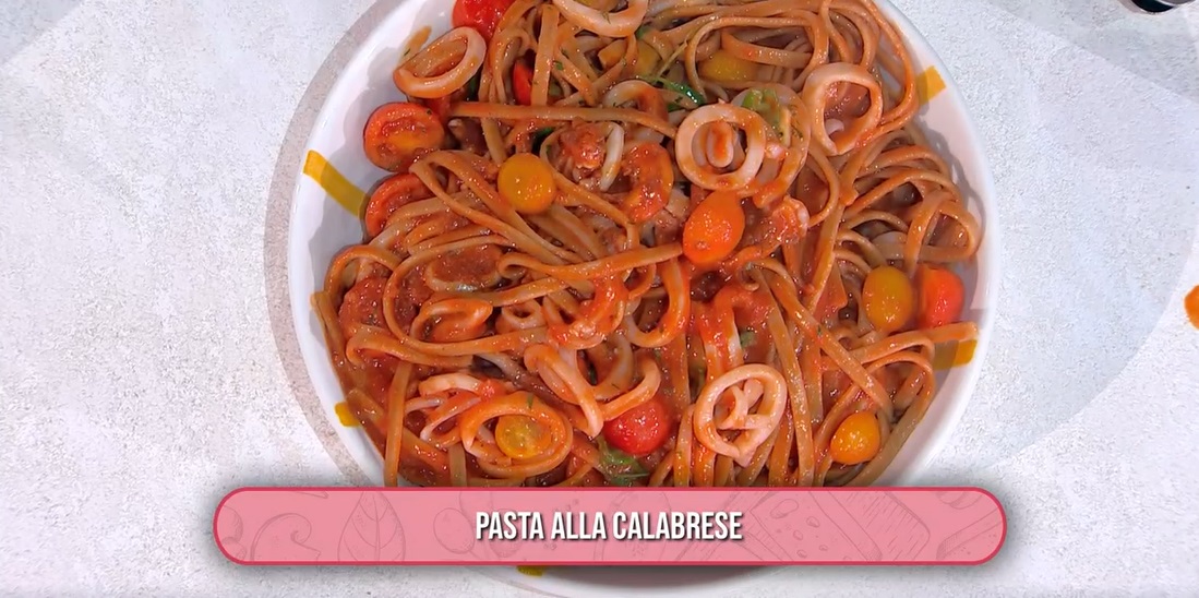Un parterre tutto al maschile, quest’oggi, che si completa con la presenza di Federico Fusca. Il cuoco dal ciuffo fiammante torna a raccontare la sua terra, la Toscana, anche in quest’edizione del mezzogiorno di Rai1. Federico saluta il pubblico con un piatto calabrese, ricordo delle sue vacanze. Ecco la pasta alla calabrese.