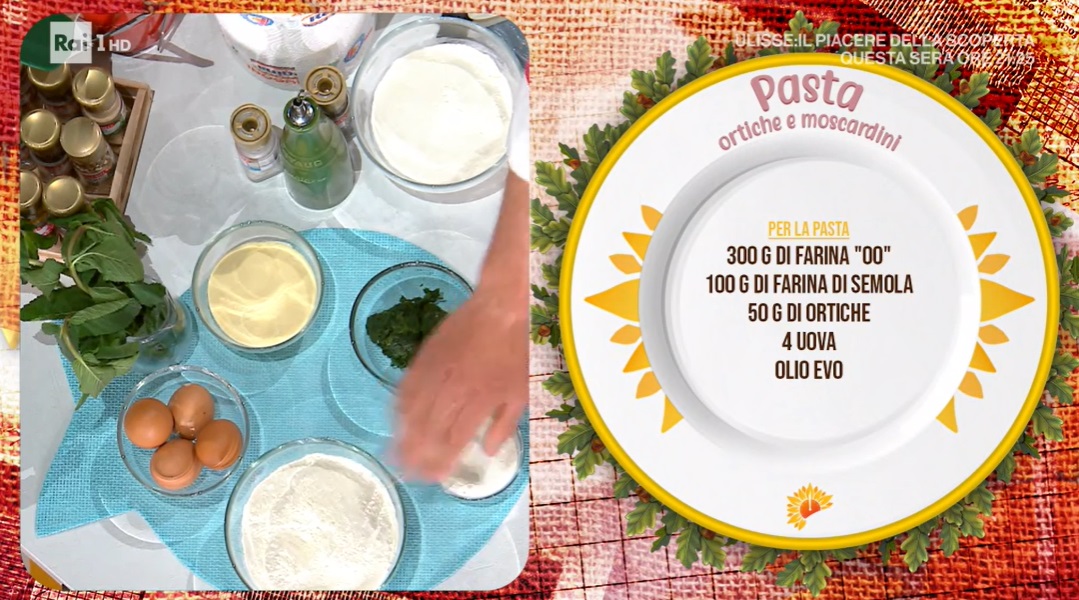 - 300 g farina 00, 100 g semola, 50 g ortiche, 4 uova, sale