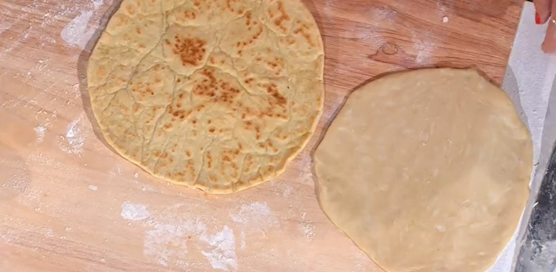 Con il mattarello, stendiamo ciascun panetto, in modo da ottenere dischi sottili. Le mettiamo a cuocere su un testo o una padella ben calda: deve dorare sui due lati.