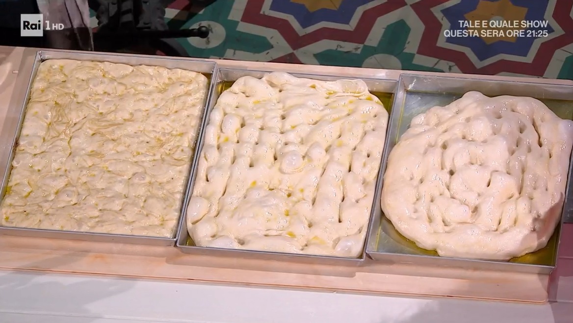 • 1 kg farina 0, 650 g acqua, 12 g lievito di birra, 70 g olio evo, 25 g sale