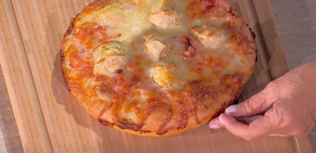 Condiamo con la mozzarella tritata, il prosciutto cotto, i carciofini a spicchi e la toma a fettine. Cuociamo in forno caldo e statico a 240° per 20 minuti (non più di due per volta).