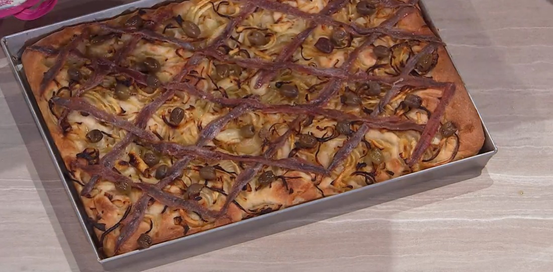 Si chiude con il lievitato di oggi, la trasferta di Fulvio Marino in Liguria, in occasione del festival di Sanremo. Dopo l’iconica focaccia di ieri (qui), oggi tocca ad un lievitato meno celebre, ma golosissimo, la pizza all’Andrea.