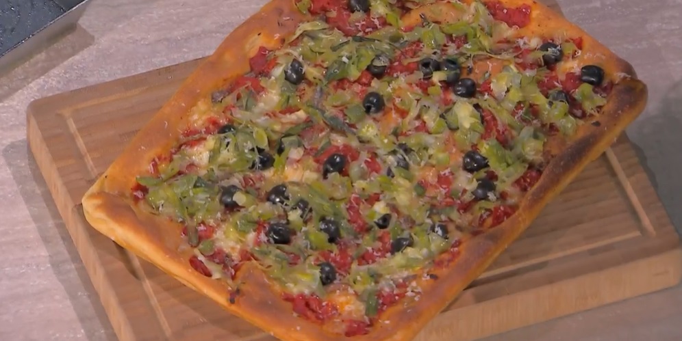 Fulvio Marino chiude in bellezza questa settimana in cucina, preparando una specialità siciliana, una pizza tipica di Termini Imerese. Il panettiere piemontese si cimenta nella preparazione della pizza favazza.