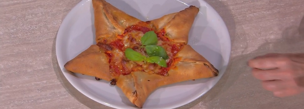 Settimana memorabile per gli appassionati di lievitati, grazie alle proposte di Fulvio Marino. Il panettiere piemontese, oggi, chiude la sequenza di pani natalizi con una pizza a tema, la pizza stella di Natale.