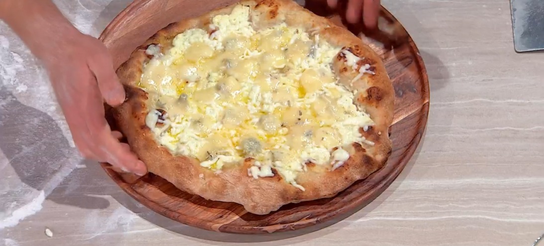 Ultimo giorno della settimana, ultimo lievitato firmato Fulvio Marino. Come consuetudine al venerdì, il panettiere piemontese prepara una pizza, e che pizza! Vediamo come preparare un casa la pizza tonda ai 4 formaggi.
