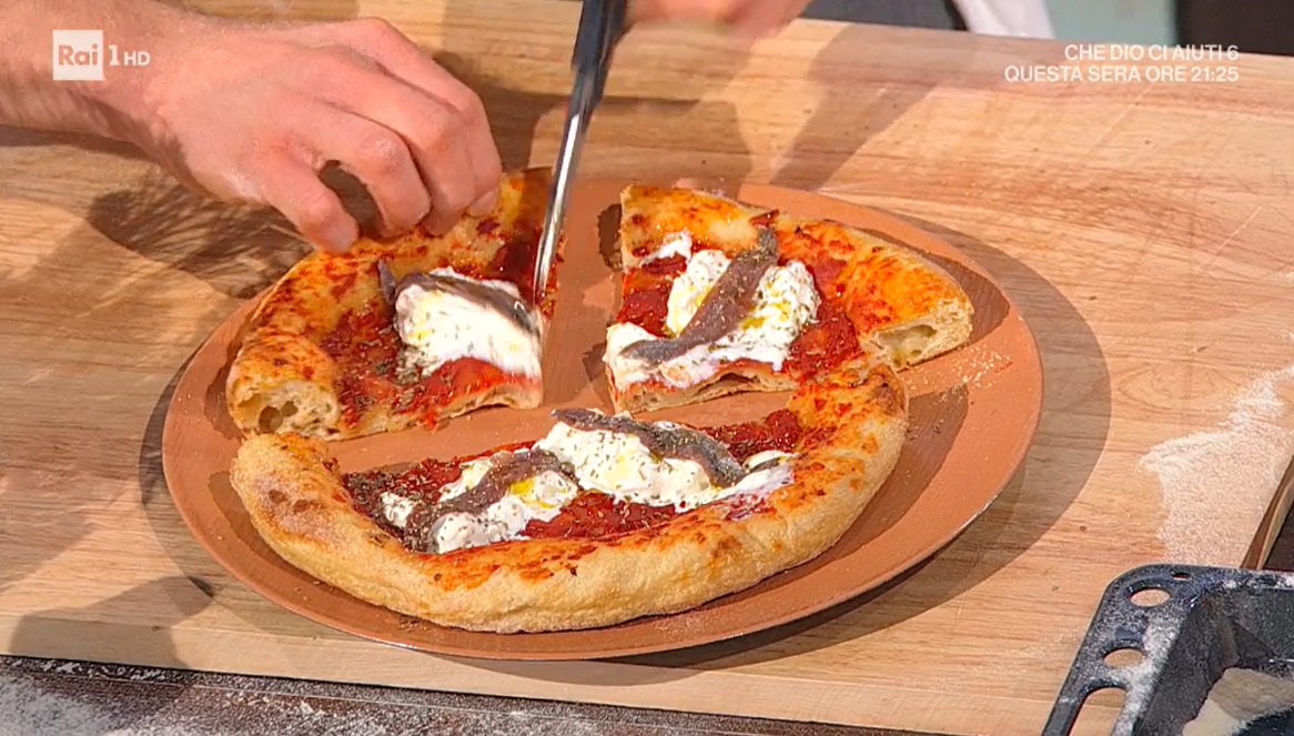 Posizioniamo ogni panetto lievitato sul banco infarinato con abbondante semola. Con le dita, stendiamo ogni panetto, partendo dal centro e lasciando i bordi più alti. Posizioniamo i dischi ottenuti sulle teglie o sulla pala. Spalmiamo sopra un po’ di passata di pomodoro ed un filo d’olio. Cuociamo in forno caldo a 250° per 5 minuti nella parte bassa del forno e 5 minuti nella parte alta. All’uscita dal forno, completiamo con i filetti di acciughe, la stracciatella e l’origano.