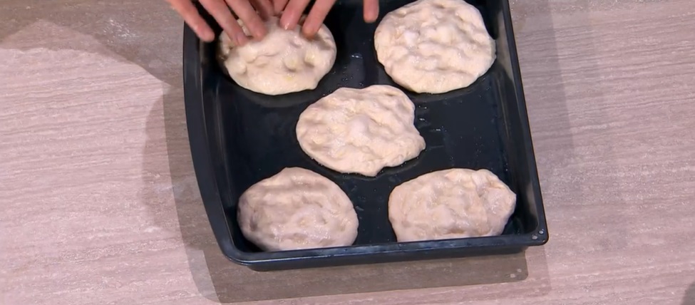 Dividiamo l’impasto in panetti da 150 g, che ripieghiamo su loro stessi, formando delle sfere lisce. Le disponiamo su una teglia ben distanziate, le copriamo e le lasciamo lievitare per 3 ore a temperatura ambiente.