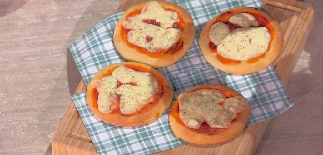 Stendiamo l’impasto con il mattarello, ad uno spessore di circa 2 cm. Con un coppapasta ritagliamo dei dischi del diametro di circa 10 cm. Disponiamo i dischi su una teglia, li copriamo e lasciamo lievitare per 40 minuti. Spalmiamo sopra la passata di pomodoro, la mozzarella tritata (ben asciutta) e cuociamo in forno caldo e statico a 250° per 15 minuti. All’uscita dal forno, finiamo con origano e formaggio grattugiato.