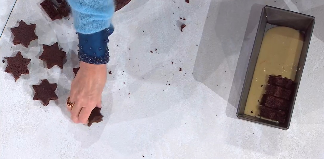 Quando il pan di Spagna sarà freddo, con un taglia biscotti, ricaviamo tante stelline e le teniamo da parte.