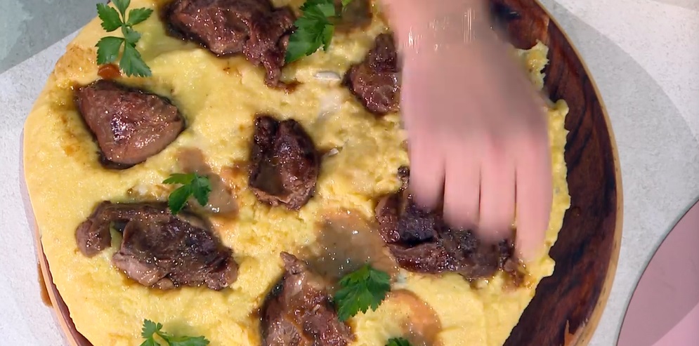 Andrea Mainardi prepara uno dei suoi piatti ‘esagerati’, un secondo piatto sontuoso, che fa impazzire Antonella. Ecco la polenta straordinaria.