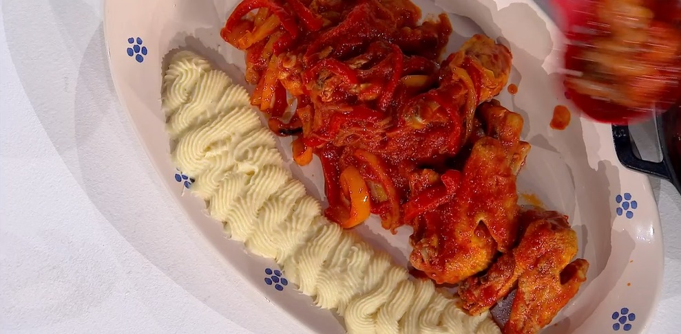 Daniele Persegani prende a prestito una ricetta dalla tradizione culinaria romana, impreziosendolo con una preparazione della cucina internazionale, un purè soffiato. Vediamo come preparare il pollo ai peperoni.