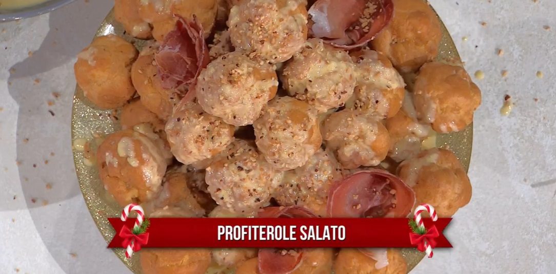 Farciamo i bignè ormai freddi con la crema al culatello. Rimettiamo in frigorifero. Li impiliamo su un piatto da portata, ‘incollandoli’ tra loro con un po’ di crema.