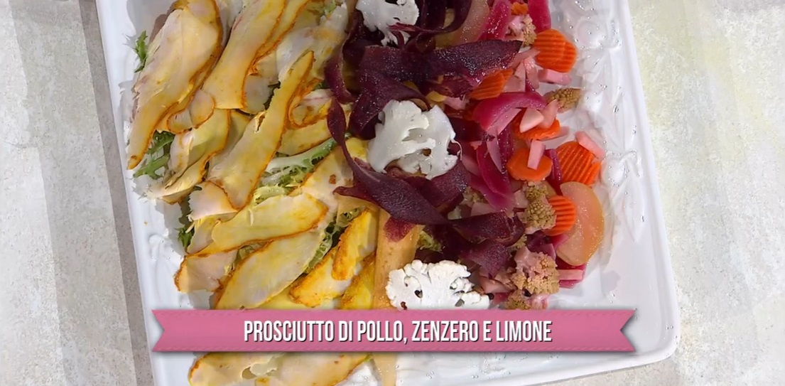 prosciutto di pollo di Fabio PotenzanoAnche Fabio Potenzano, oggi, si adegua alla nuova linea dettata dalla severa Evelina: alleggerire! Il cuoco siciliano, avvezzo alla cucina ‘leggera’ e gustosa, come d’altronde è quella della tradizione siciliana (a parte qualche fritto di troppo!), oggi prepara un secondo piatto a base di pollo, il prosciutto di pollo.
