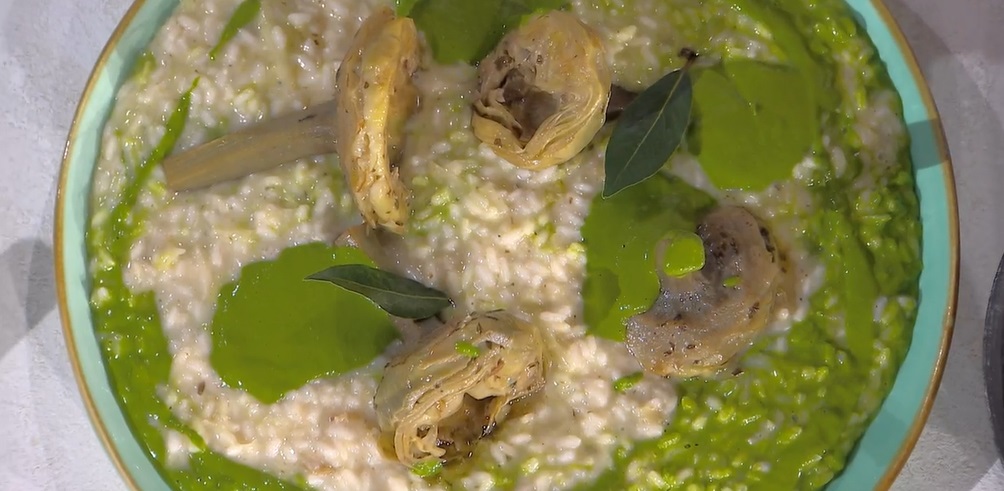 Sergio Barzetti c’è e lo si sente dal profumo dei suoi deliziosi piatti a base di riso. Il cuoco lombardo anche oggi esalta il suo ingrediente prediletto, proponendo il risotto al limone con carciofi.