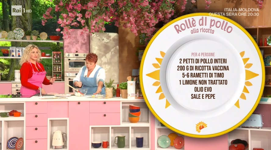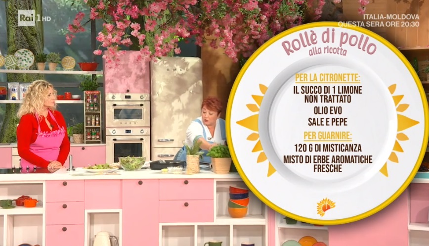 rollè di pollo alla ricottaIl buongiorno della zia Cri oggi è a base di pollo. Un secondo piatto leggero e goloso, scelto da un affezionato telespettatore. Vediamo come preparare il rollè di pollo alla ricotta.