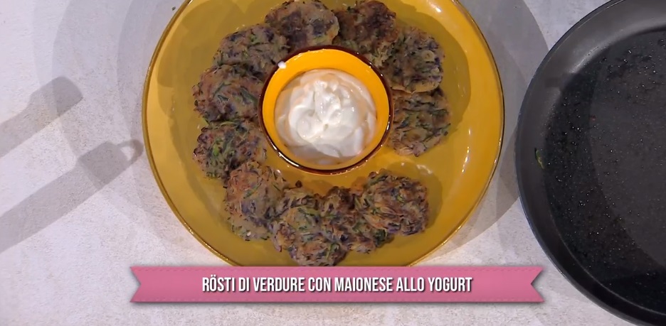 Per la gioia di Alfio, che lascia il suo spuntino solo per raggiungerla, arriva in cucina Barbara De Nigris. La ‘cuoca di montagna’, oggi, ci prepara un piatto vegetariano e golosissimo, il rosti di verdure con maionese allo yogurt.