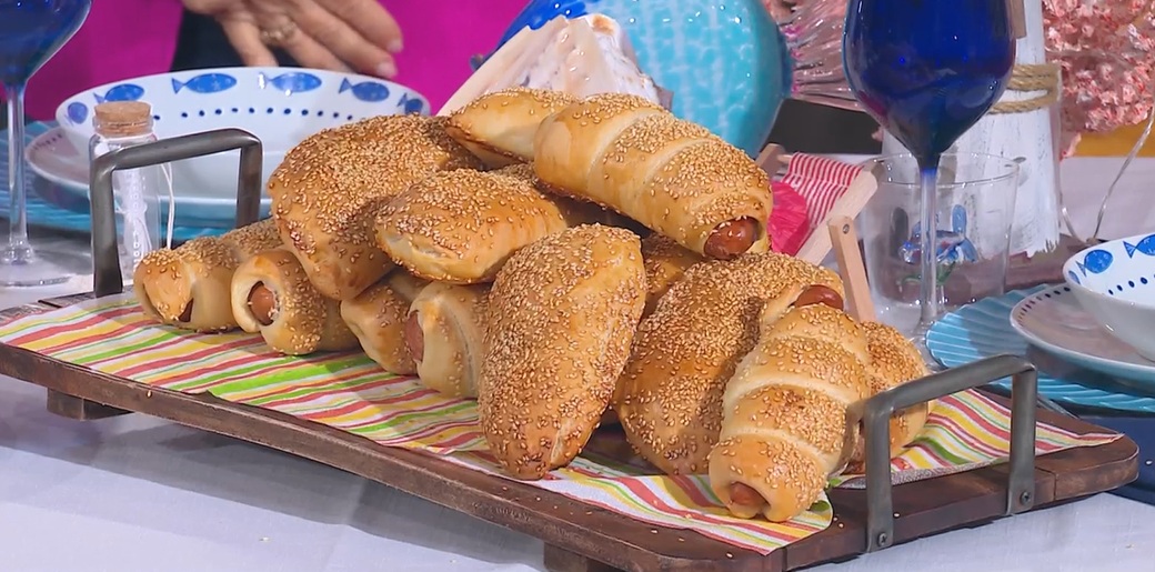 Per il rollò, ricaviamo un serpentello d’impasto, che avvolgiamo intorno ai wurstel grandi, ben stretto.