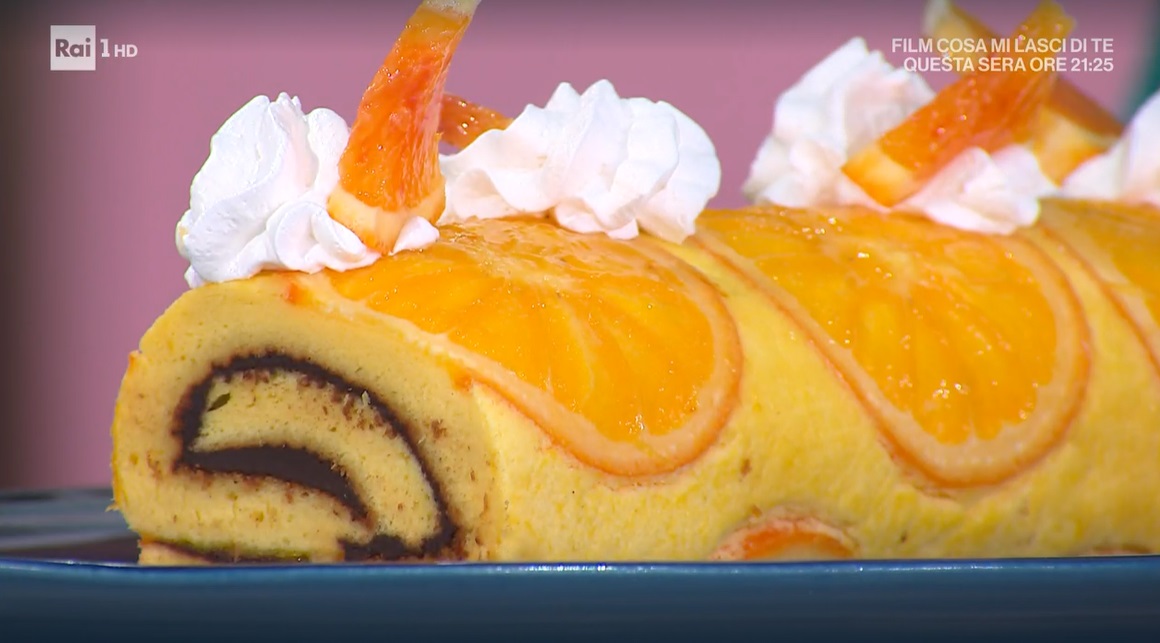 rotolo all'arancia di Natalia CattelaniA metà settimana, quello che ci serve è un dolce di Natalia Cattelani. La pasticcera casalinga più capace dell’etere ci regala un’altra delle sue idee originali, una torta all’arancia, nel dettaglio, un rotolo all’arancia.