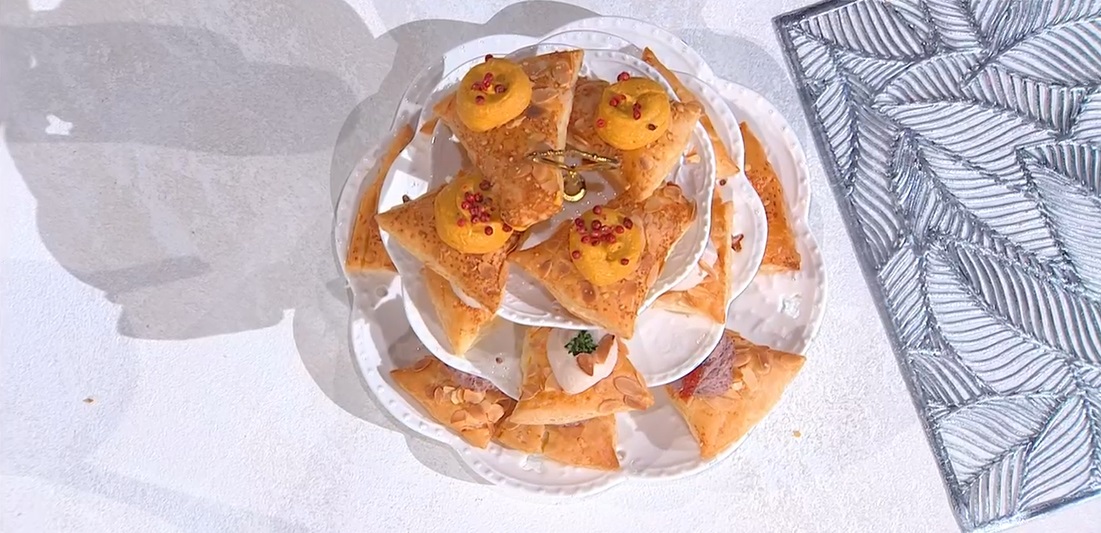 - 150 g mascarpone, 150 g ricotta, 150 g formaggio spalmabile, 1 cucchiaino di succo di limone, 100 g tonno, 150 g zucca cotta al forno, 50 g patè di olive, 30 g pomodorini secchi, sale e pepe