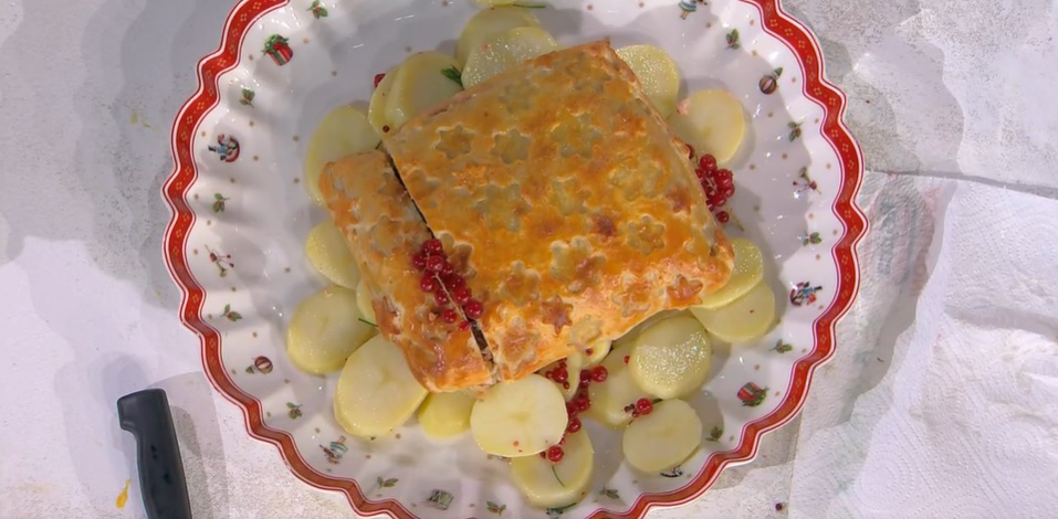 Dopo la ‘comparsata’ di ieri, al fianco di Valbuzzi, Antonio Paolino si riprende la cucina per preparare un piatto ‘stellare’, un secondo piatto di pesce, perfetto per le feste. Vediamo come preparare il salmone in sfoglia.