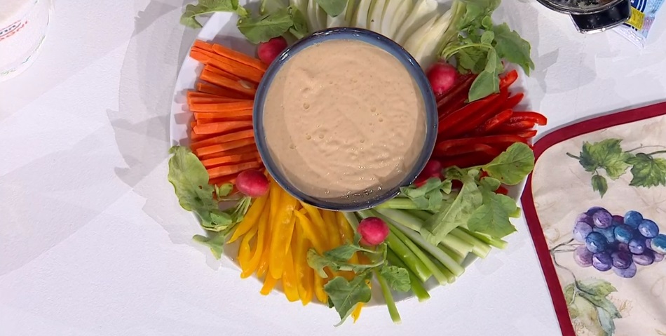 Antonella serve la salsa con delle verdure crude, tagliate a listarelle.