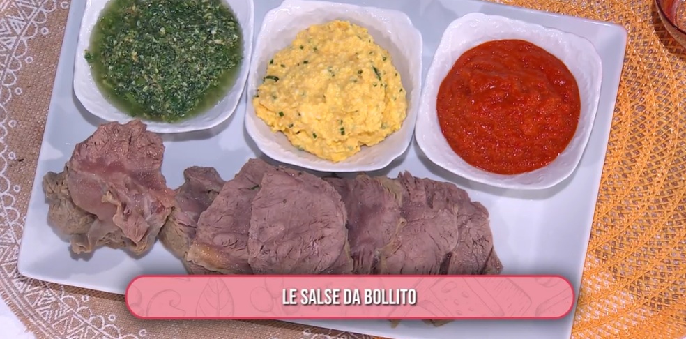 salse da bollito di Daniele PerseganiDopo il ‘salotto’ con Antonella e Carlotta, arriva in cucina Daniele Persegani con una ricetta ispirata alle riflessioni delle suddette. Il cuoco emiliano prepara le salse da bollito.