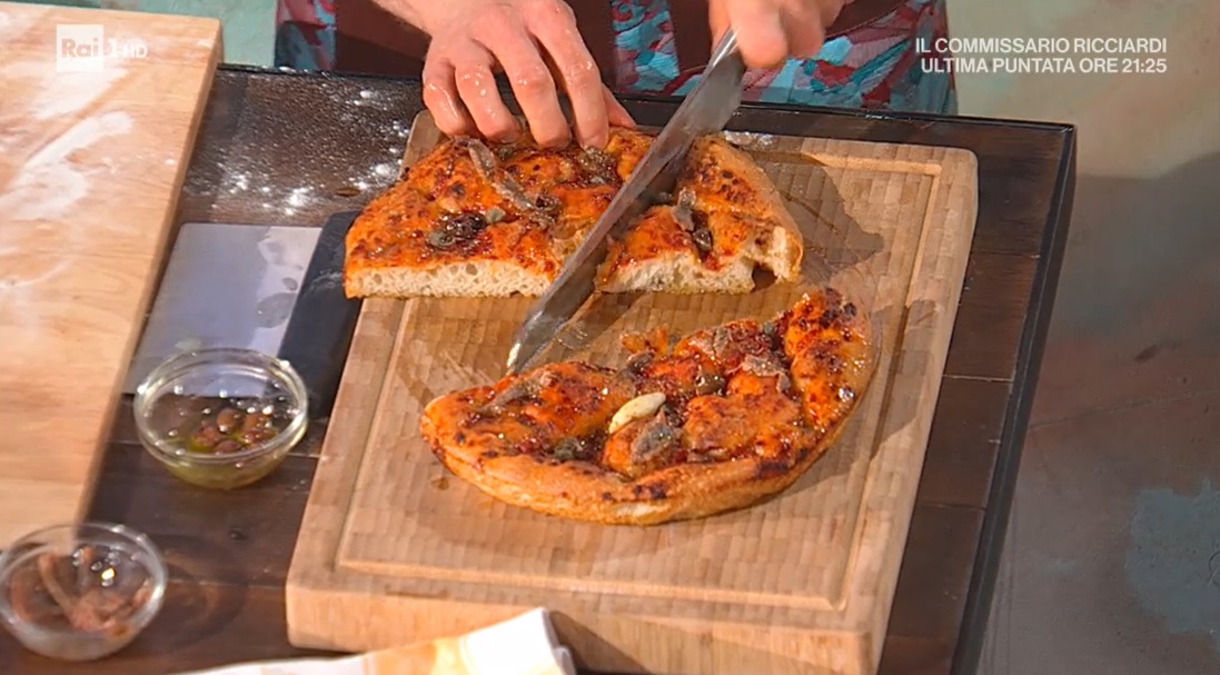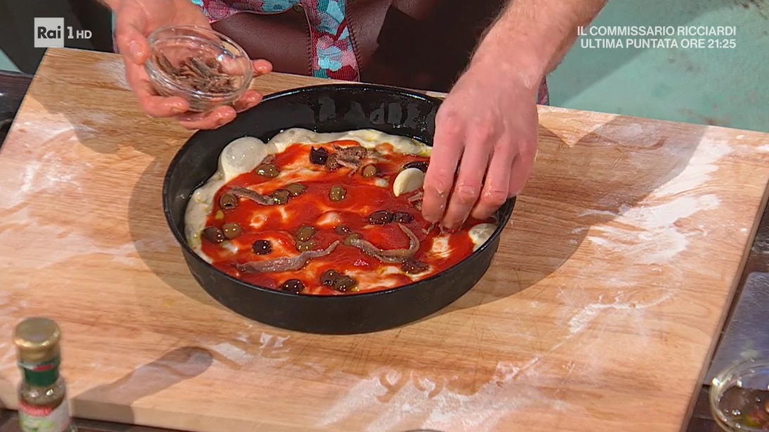 focaccia sardenaira di Fulvio MarinoLievita, lievita ed esplode in forno, il pane di Fulvio Marino. Il panettiere genovese ci porta in giro per l’Italia, preparando un’altra specialità regionale. Nel dettaglio, Fulvio ci porta in Liguria, a Sanremo, con una focaccia/pizza condita e dal profumo di mare. Ecco la sardenaira.