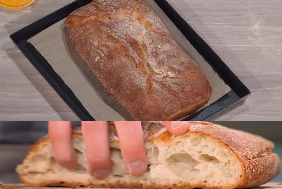 - 250 g semola di grano duro, 250 g farina grano tenero, 2 g lievito di birra fresco, 370 g acqua, 11 g sale